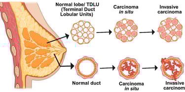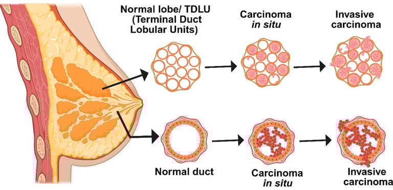 As abnormal cells continue to grow and divide, they begin to form a mass of tissue called a tumor. This tumor can take up space within the breast and begin to affect the surrounding healthy tissue.