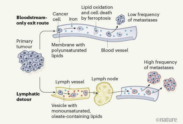 Breast cancer cells can break away from the original tumor and enter the lymph vessels. These vessels carry fluid throughout the body and connect to lymph nodes, especially those located under the arm — known as axillary lymph nodes.